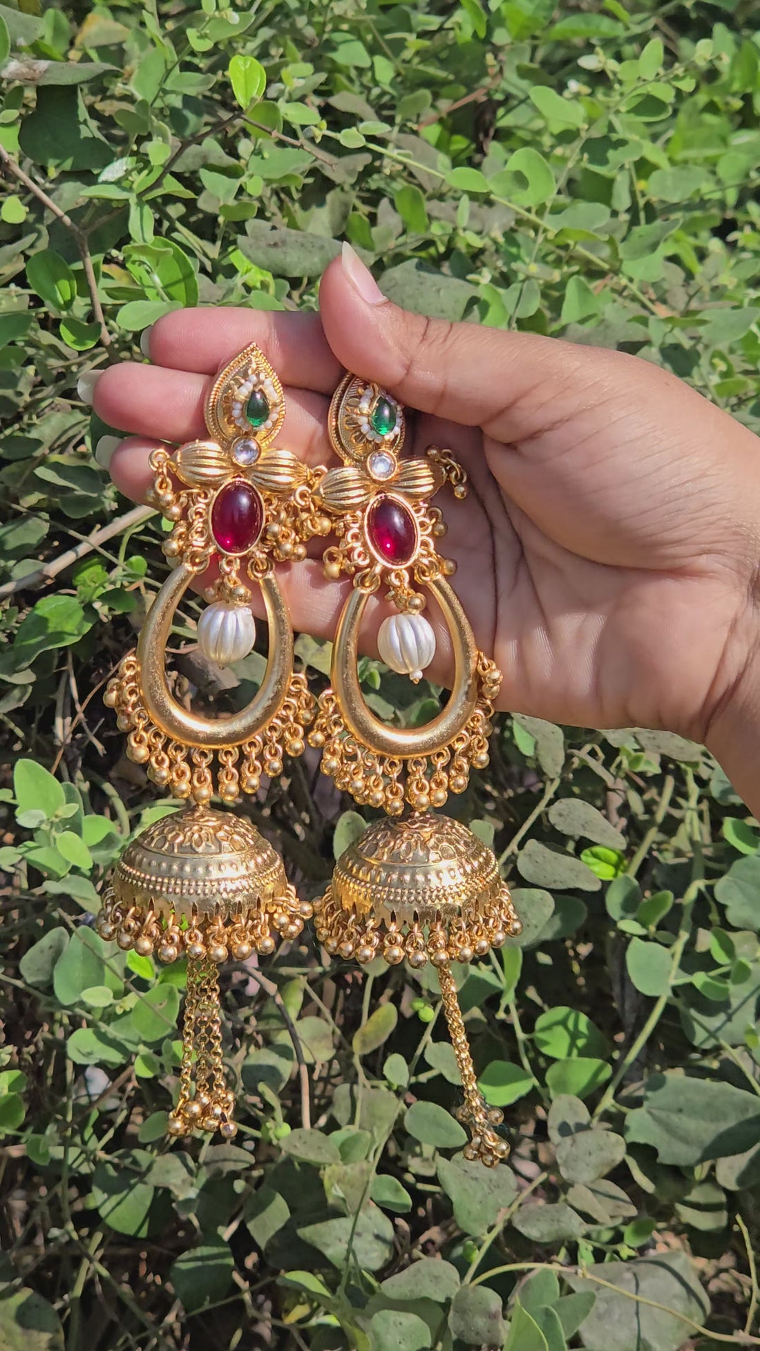 | Embellishments | Decorative ghungroo beads around jhumka dome |